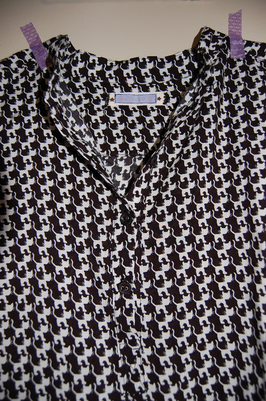 J'avais repéré cette blouse, avec des petits chats trop mimis, mais en la regardant bien, je me suis dit que je pourrais me la faire moi-même avec le patron 22H de Deuxième Arrondissement.