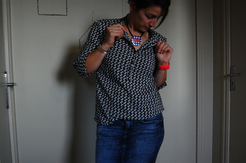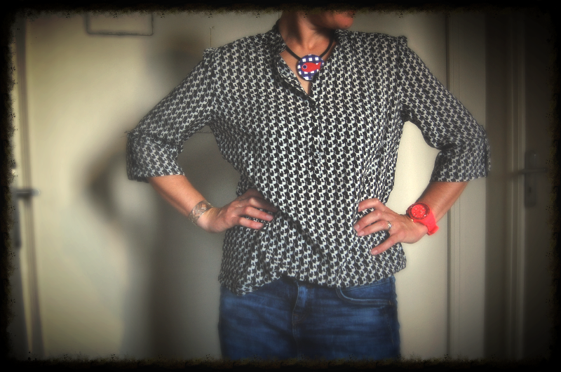 Au final, c'est exactement la blouse que je voulais, le rendu me plait et elle ressemble aux souvenirs que j'avais de celle de chez Esprit. En ce moment, je puise l'inspiration dans les modèles que je repère dans mes boutiques préférées.... si le modèle me plait mais que je vois un patron qui pourrait ressembler, je ne l'achete pas, je me dis que je me le ferais.... (mais du coup j'achete du tissus...). Parfois ça vaut le coup, comme ici, où la blouse m'est revenue a 28e, patron compris, contre 39,90e dans le magasin....