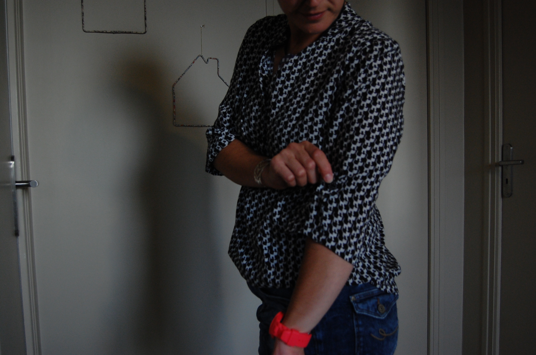 Je couds donc les cotés, les manches... et j'essaie.... et là.... la catastrophe! La blouse est tellement ample que je rentre deux fois dedans, même ceinturée y a encore trop d'ampleur, et ce n'est pas du tout le rendu que je souhaitais pour ce modèle...