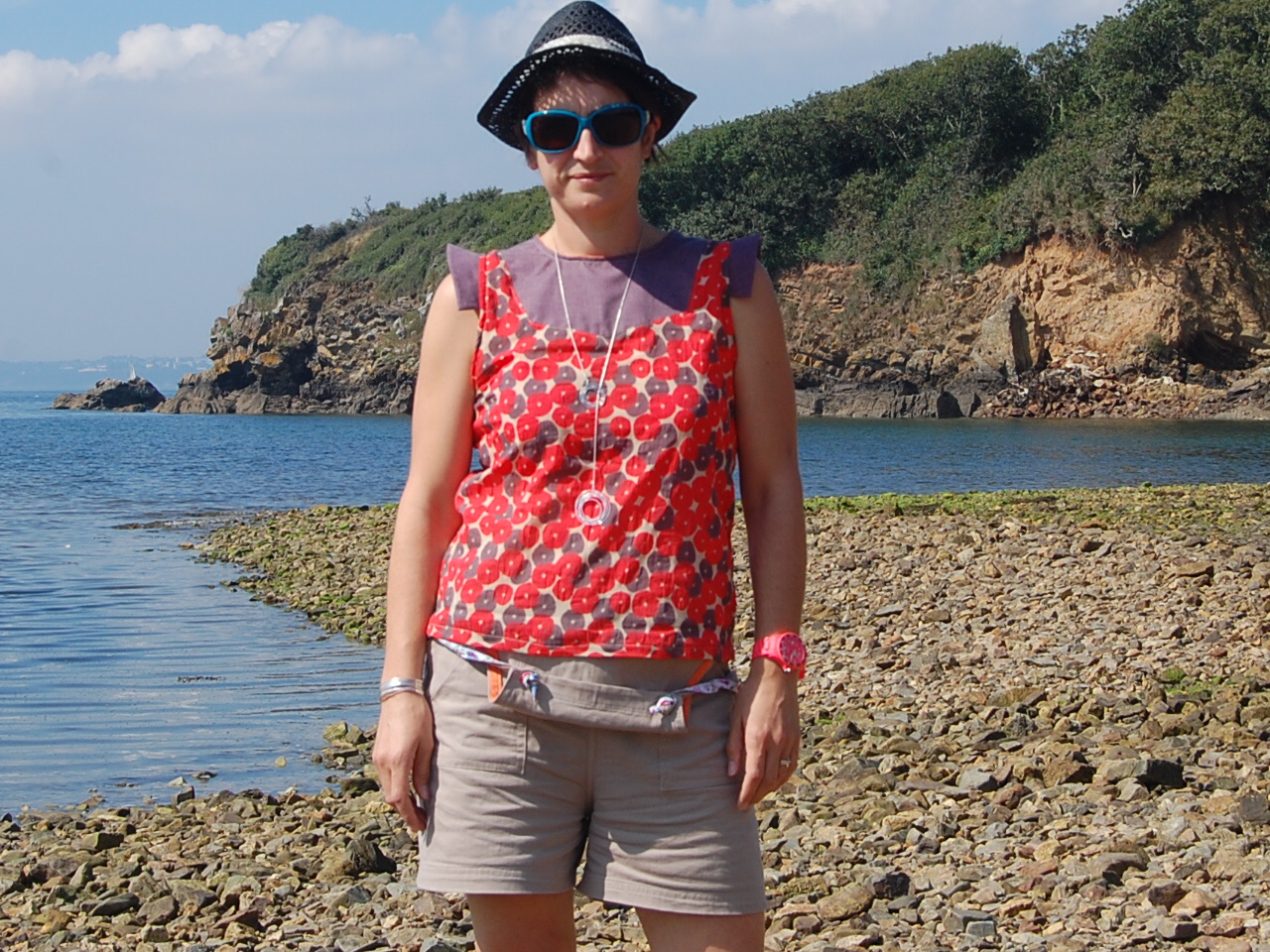 Une fois Turia Test finie, gros probleme: je n'ai pas de haut pour aller avec.... Heureusement je venais d'acquérir un patron Named: le koko top! Alors Named ca faisait un petit moment que je bavais sur leur collection, mais tout en anglais, j'hésitais un peu... Grace à ma cop's IG Emilie j'ai pu tester ce petit haut! D'une simplicité déconcertante... je n'ai pas eu trop besoin des explications (donc l'anglais ne m'a pas dérangé!! ). Normalement, ce patron est conçu pour du jersey ou du moins un tissu extensible... et moi, j'ai foncé droit dans le mur avec un coton gaufré... pas extensible du tout! Pendant la couture, j'ai eu un moment de doute, en me disant que j'aurais ptet du couper une taille au dessus... Mais finalement, je rentre dedans; avec juste une légère "dystocie" au passage de la tête (oué la comparaison avec un accouchement été trop tentante...).