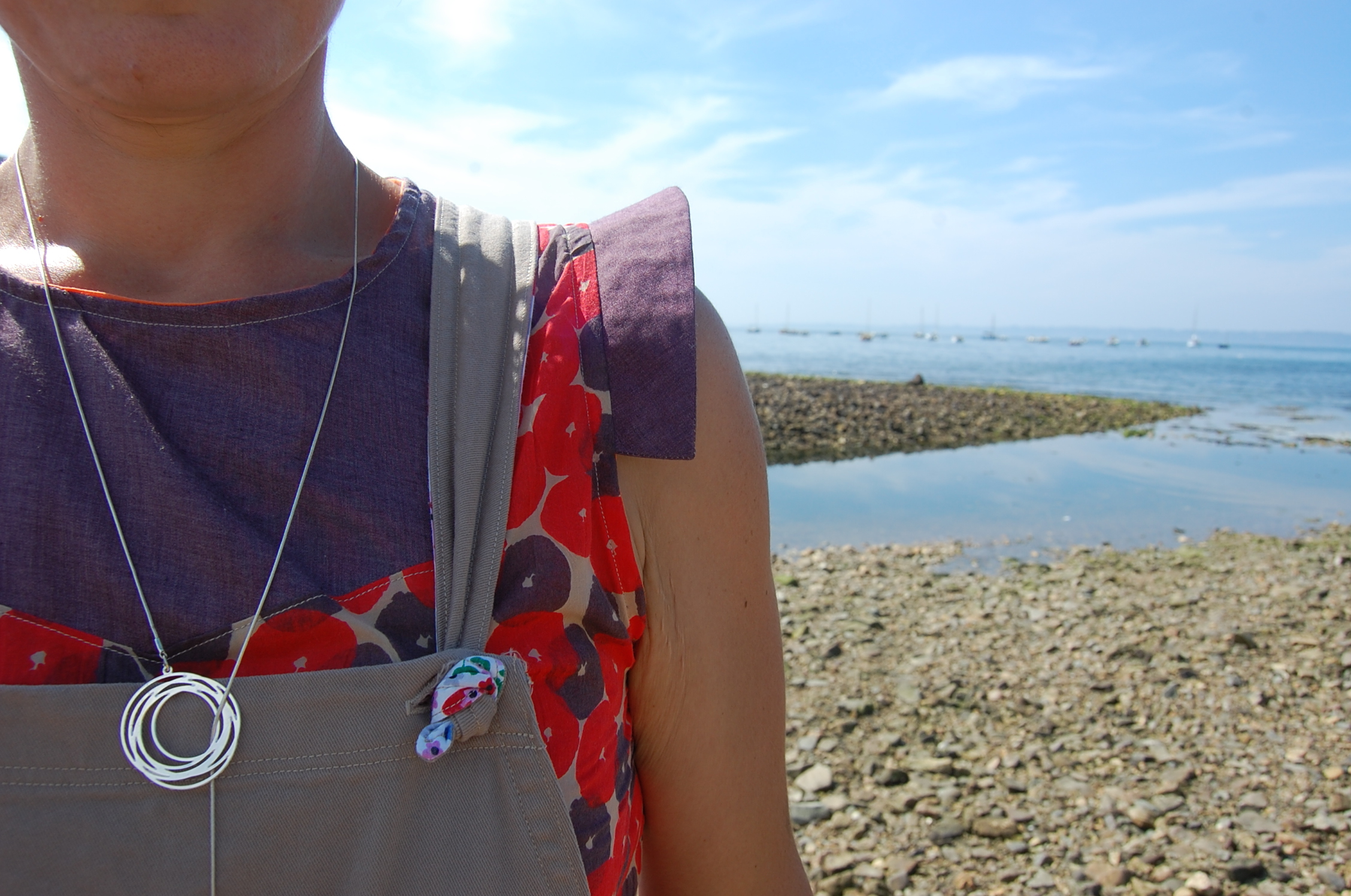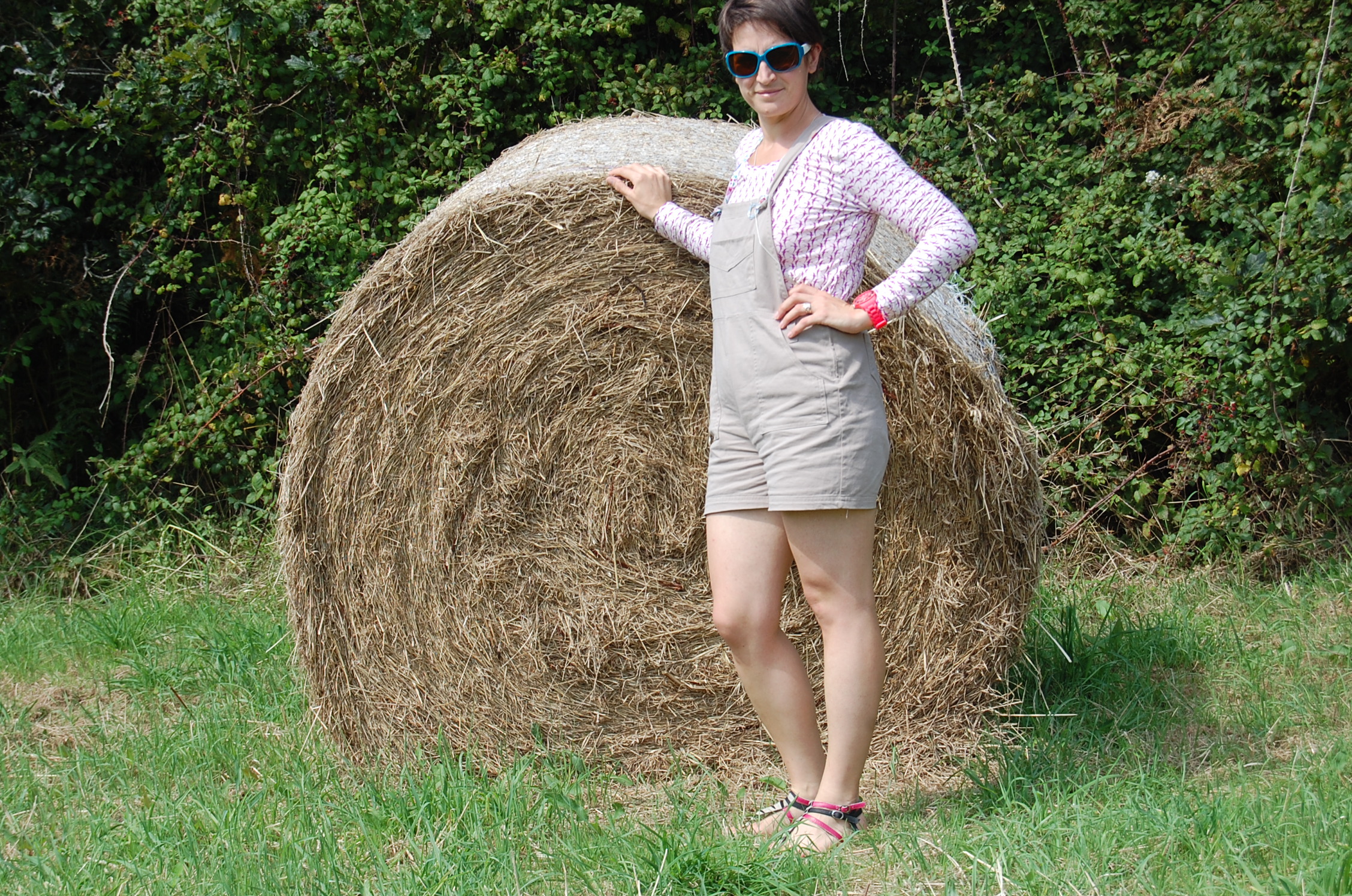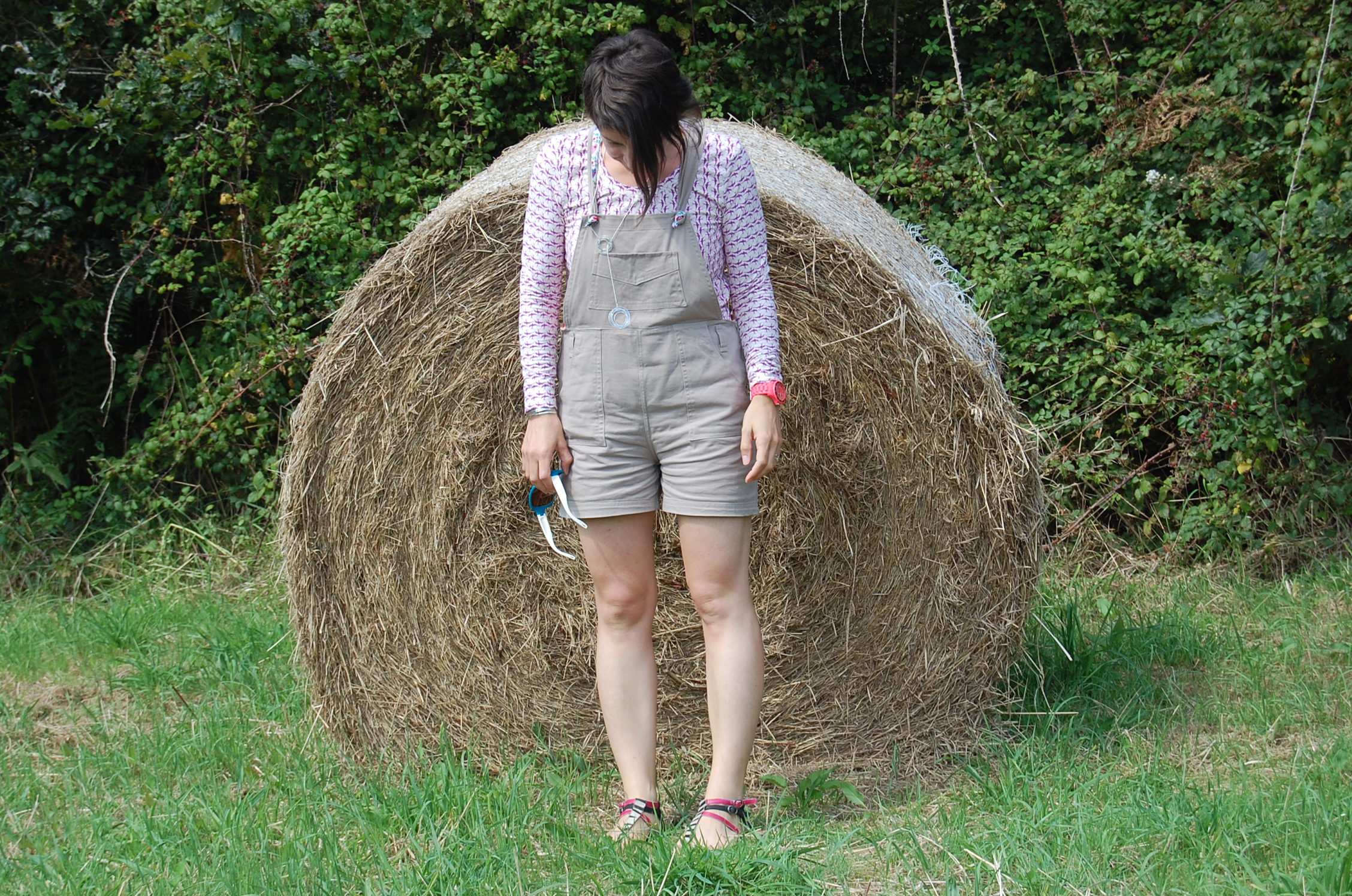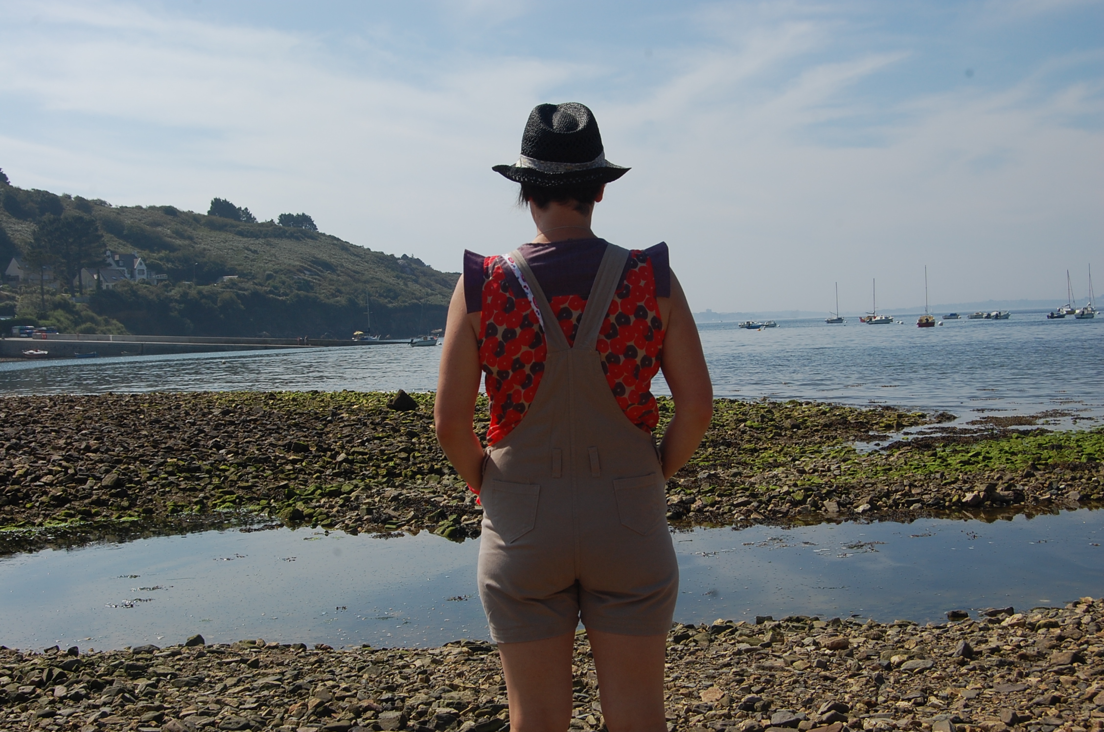 J'ai bien fait de faire une "toile" parce que cela m'a permis de me rendre compte que le haut et les bretelles étaient trop court pour moi (je pensais avoir des grandes jambes et un petit buste, mais apparemment nan...). Du coup, la salopette n'est pas vraiment portable en dehors du cadre de la maison, et elle me rentre un peu dans le derrière, ce qui n'est pas très agréable... Et franchement, j'aurais été dégoutée que ce soit avec ma version Liberty-qui-coute-un-bras que ça m'arrive... Cette gabardine je l'aime bien, mais disons qu'elle reste moins "précieuse"...