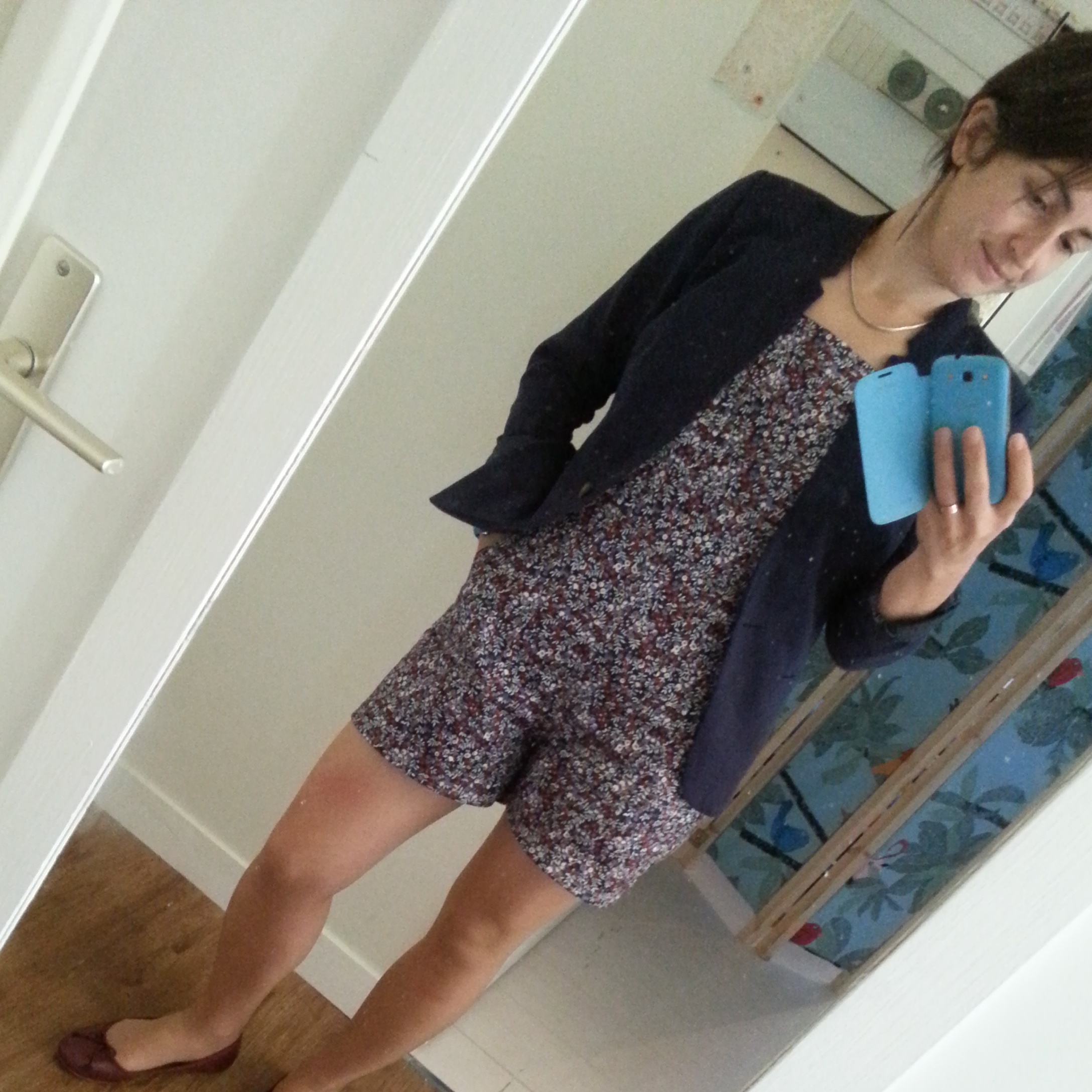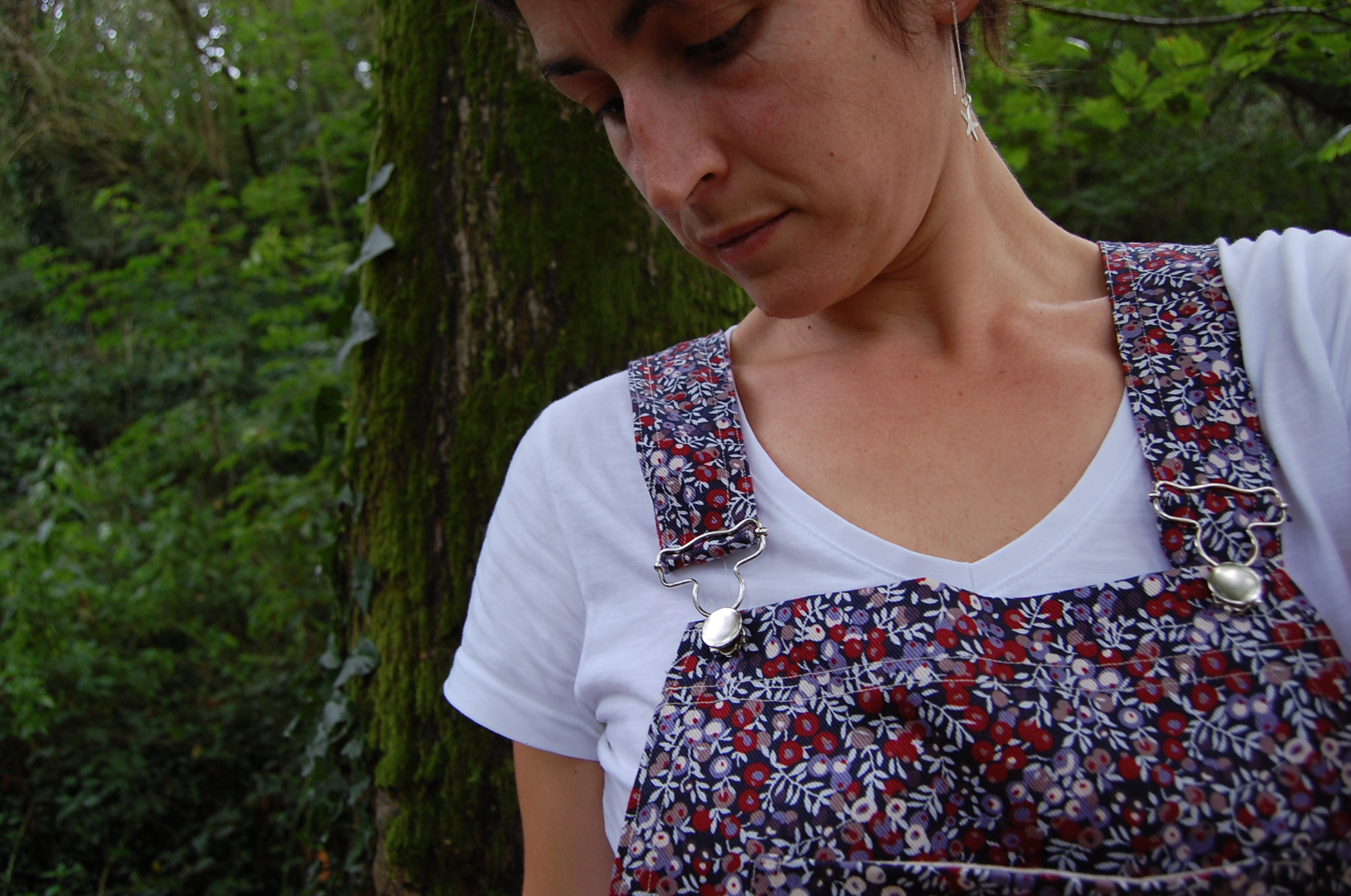 Mais pour la salopette Turia, je voulais utiliser ce liberty (entre autre), et il était hors de question de couper cette merveille sans être sûre de mon coup. Voilà pourquoi une première version de Turia a vu le jour; et heureusement que je n'ai pas coupé direct dans le liberty denim, parce que j'ai du procéder à quelques ajustements pour que cette salopette soit portable et confortable.